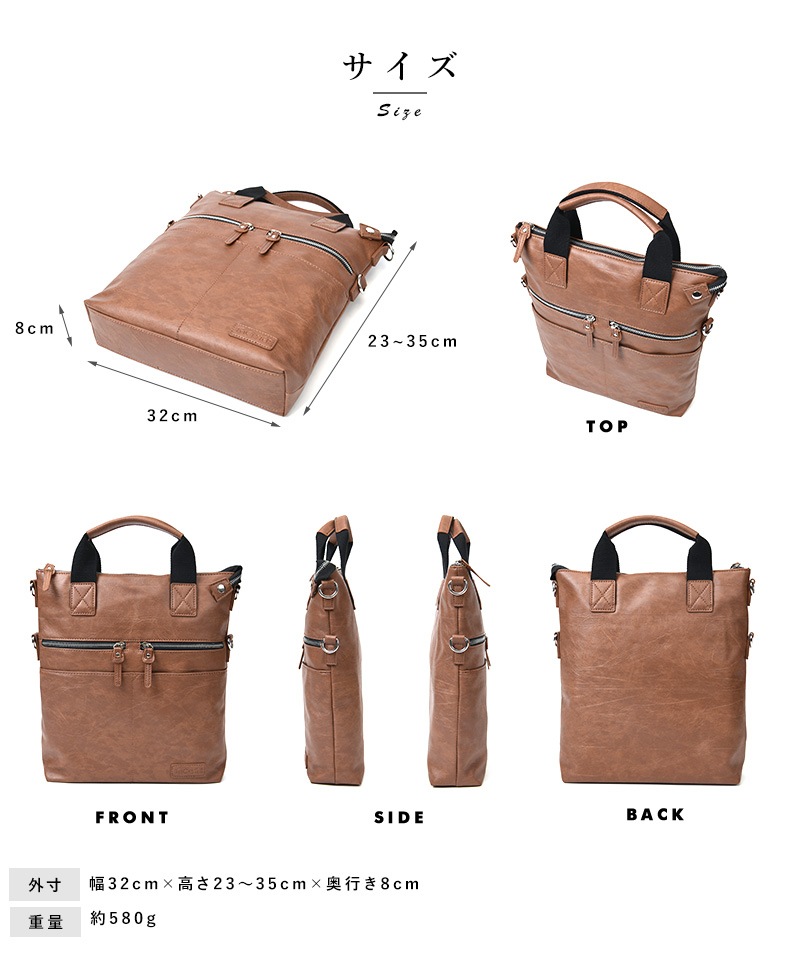 TRICKSTER メンズトートバッグ 3way ELTON ショルダー バッグ男性 カジュアル/かっこいい/合皮 小さい/¥6,930(税込)