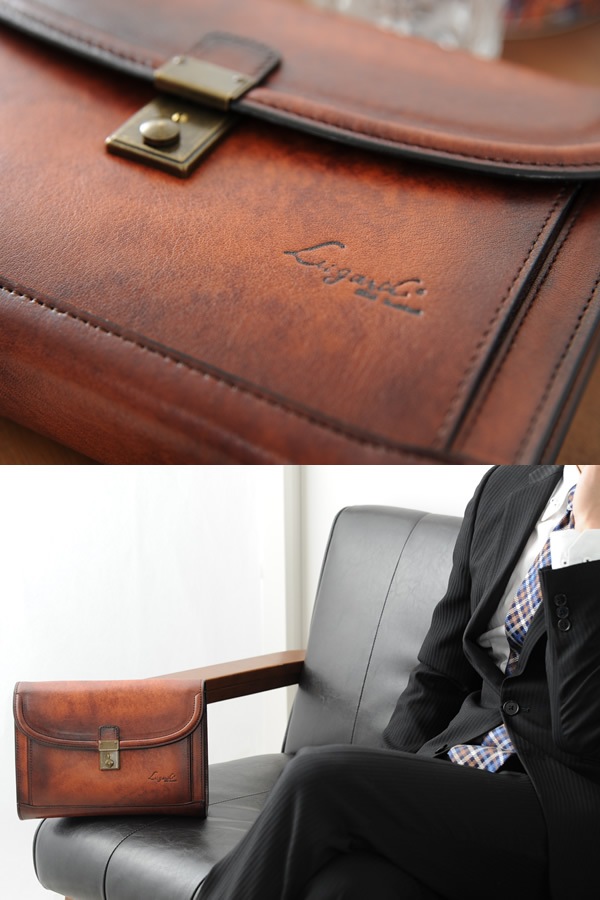 日に焼けたようなシャドーが目を引くアンティーク感あふれる国産セカンドバッグ。厳選された牛革レザーに職人が一つ一つシャドーをかけた、珠玉の逸品です。財布、携帯電話、タバコ、文庫本などが収納できる、スタンダードなサイズ。メイン収納は二層式になっているので仕分けにも優れ、貴重品が多くなりがちな旅行などに最適です。このクラシカルな顔立ちながら、ファッションを選ばず、カジュアルにもビジネスにも出番があります。アンティーク家具のような深みを帯びたサンバースト・ブラウン。人生を充実させる、味わい深いメンズバッグです。。 |