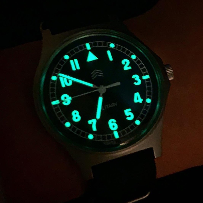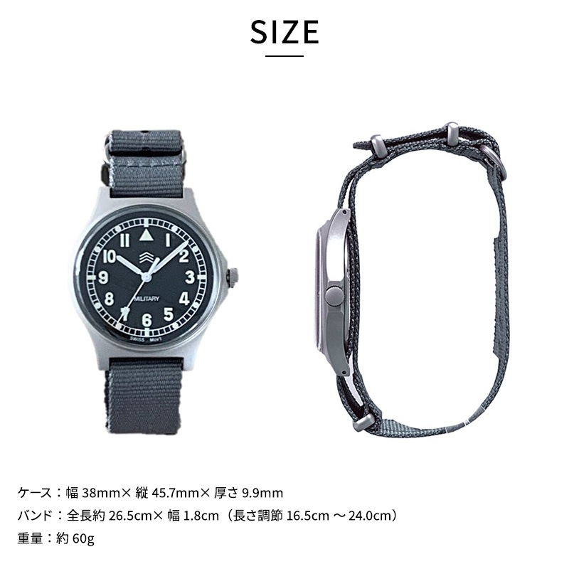 英国陸軍仕様をベースに、当時のミルスペックを忠実に再現しつつ、サイズ感をアップデートしてケース径を38ミリに拡大しました。