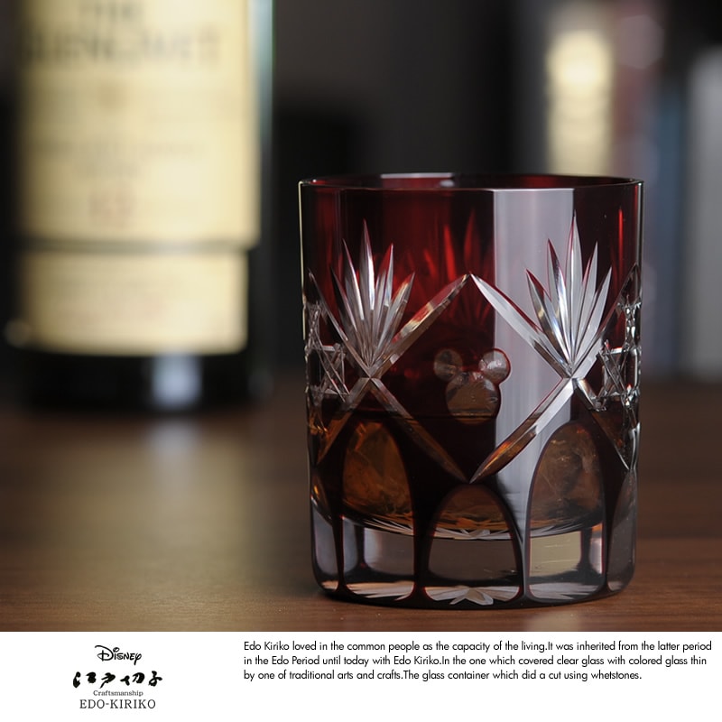江戸切子 × Disney ロックグラス 籠目 赤 切子グラス 日本製 ミッキーマウス用 メンズ グラス カップ コップ 酒器