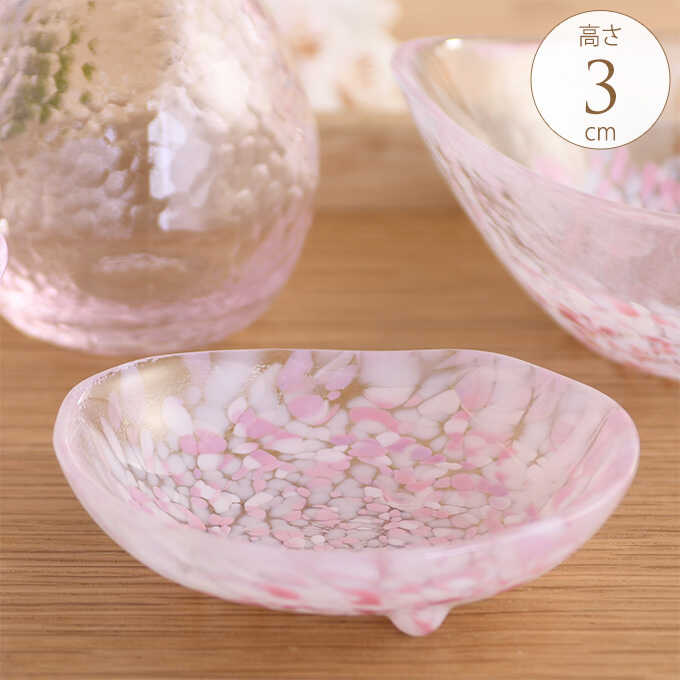日本製 食器 国産 ガラス 桜咲く 春の三つ足豆皿 国産ガラス おしゃれ きれい 美しい 和風 津軽びいどろ 青森