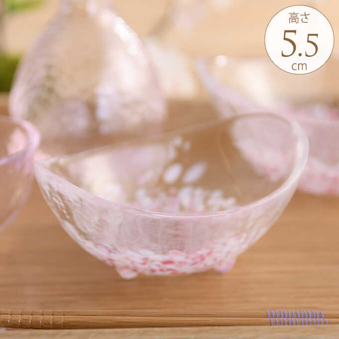日本製 食器 国産 ガラス 桜咲く 春の三つ足楕円小鉢 国産ガラス おしゃれ きれい 美しい 和風 津軽びいどろ 青森