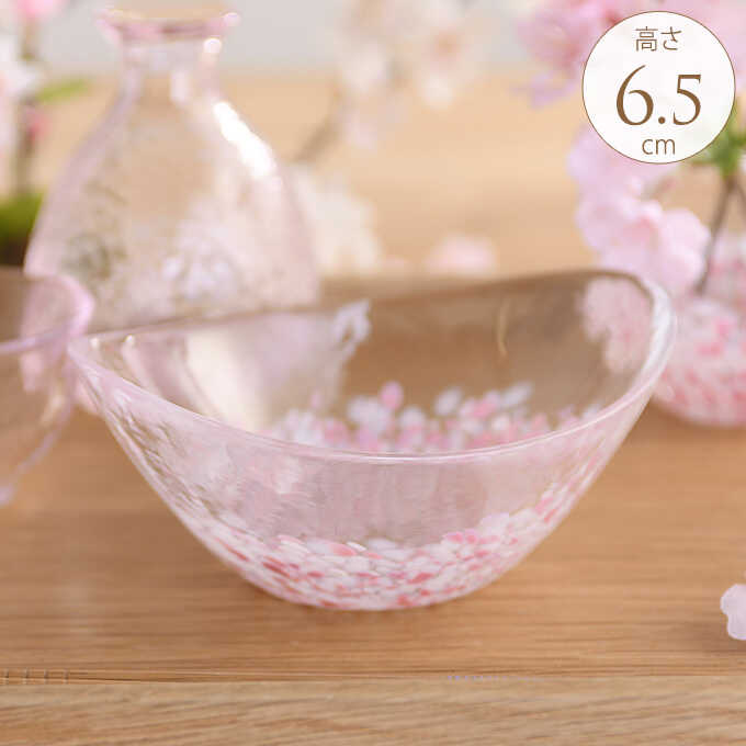 日本製 食器 国産 ガラス 桜咲く 春の楕円小鉢 国産ガラス おしゃれ きれい 美しい 和風 津軽びいどろ 青森