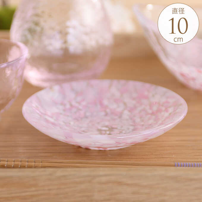 日本製 食器 国産 ガラス 桜咲く 春の豆皿 国産ガラス おしゃれ きれい 美しい 和風 津軽びいどろ 青森