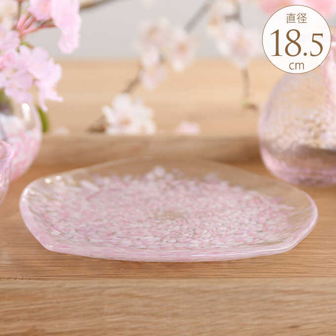 日本製 食器 国産 ガラス 桜咲く 春の皿 国産ガラス おしゃれ きれい 美しい 和風 津軽びいどろ 青森