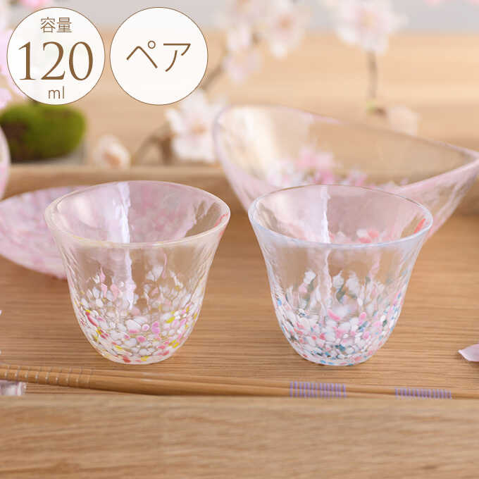 御猪口 酒器 おしゃれ 日本製 桜咲く 春の盃 ペアセット 国産ガラス かわいい 和風 津軽びいどろ 青森 ピンク