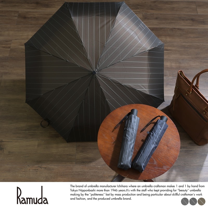 Ramuda メンズ 折りたたみ傘 自動開閉 58cm 甲州織 オルタネート ストライプ 耐風骨 8本骨 UV加工 高級 雨傘 ビジネス 大人 通勤
