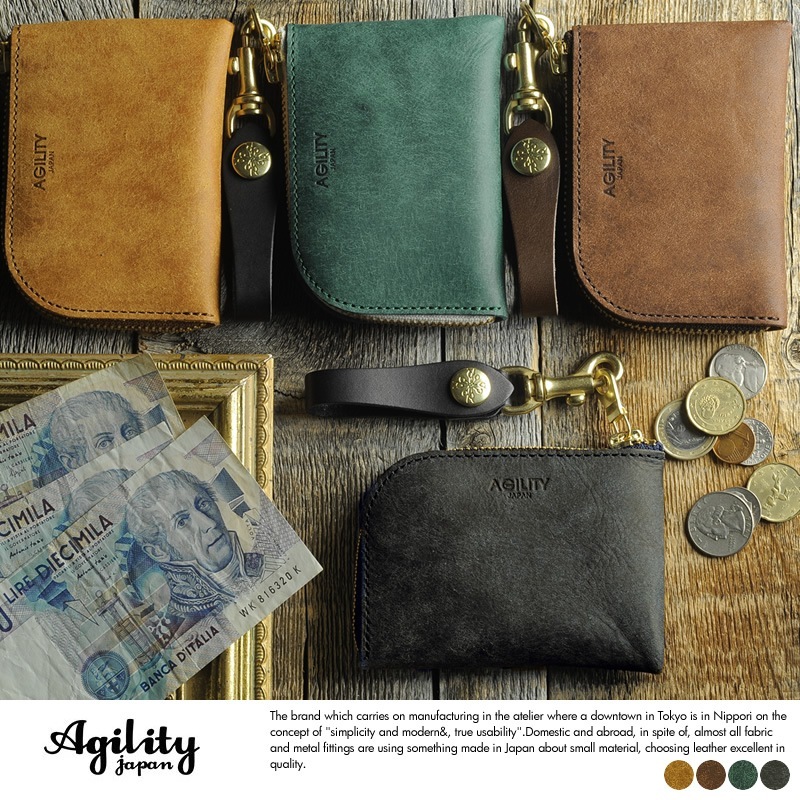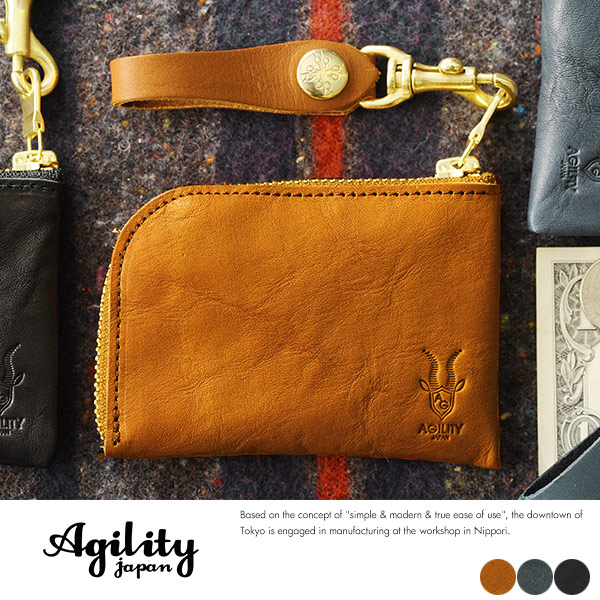 AGILITY パークウォレット ラークマイルド ミニ財布 L字ファスナーメンズ 男性/本革 撥水レザー/小銭入れ/鍵 キーケース/