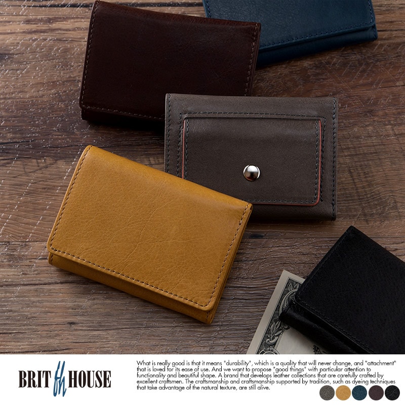 BRIT HOUSE メンズ財布 三つ折り ソフトアンティークレザー コンパクト財布おしゃれ ミニ財布/革 小さい 小型/日本 国産/