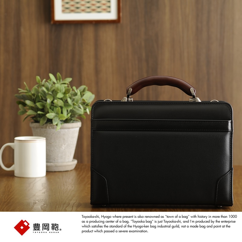 豊岡鞄 2wayミニダレスバッグ 木製ハンドル ブラック 男性用 メンズ ビジネスバッグ 日本製 合皮 A5 ショルダー付き クラシック 合成皮革 鞄 かばん バッグ