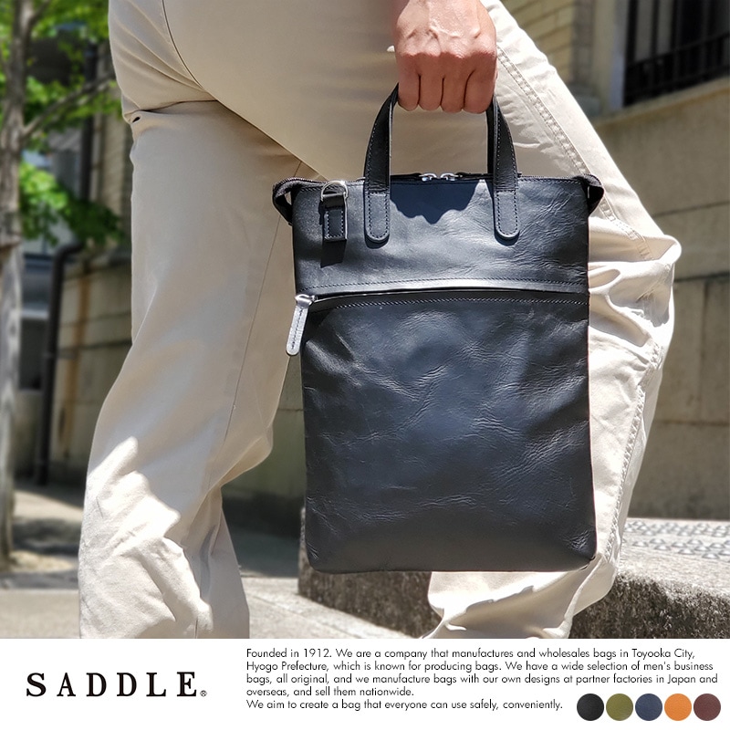 SADDLE 牛革 2way 縦型 薄マチ ショルダーバッグ A4対応 レザーバッグ/トート/かっこいい/男性/