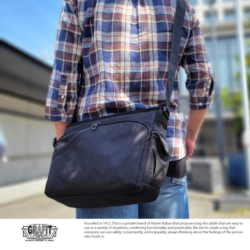 GRAFIT 軽量 撥水ナイロン 横型 ショルダーバッグ ブラック 男性大人/おしゃれ/肩掛け/鞄/