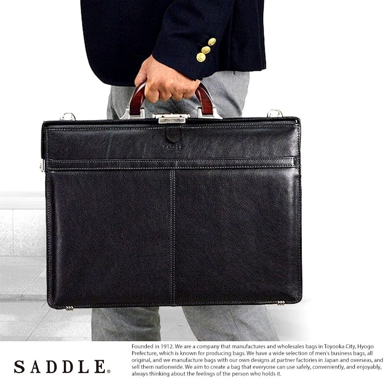 SADDLE 日本製 牛革 木手 ハンドル ダレスバッグ ブラック ビジネスバッグ/ドクター/仕事/書類/