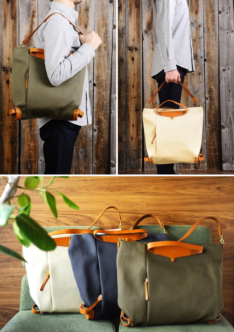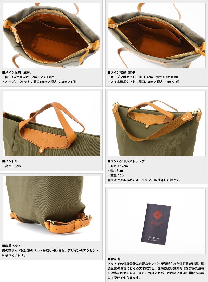 一枚の裁断パーツから制作された袋状フォルムのトートバッグ。一枚仕立てのため縫い目はわずか2箇しかなく、バッグの故障の主な原因である「縫い目からのほつれ」の心配が少ないのが特長です。素材には厚手のコットンツイルとイタリア産ヌメ革を使用。どちらも肉厚でふっくらと柔らかく、使い込むほどに味わいを深めていく素材です。そんな上質の素材を『鞄の街』豊岡の職人が熟練の技術で仕立てた、シンプルで強いトートバッグ。耐久性も高いため、汚れなどを気にせずドンドン使って経年変化を楽しんでいただきたい逸品です。