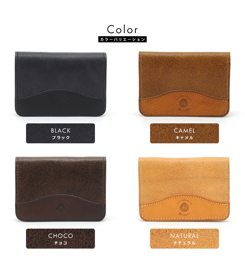 イタリア伝統の製法でなめした革を日本の職人が仕立てる。これほど贅沢な名刺入れはなかなかありません。中は3部屋構造になっており、フリーランスなど数種類の名刺を持ち歩く人や、頂いた名刺を分けておきたい人にはうってつけです。メイン素材の「リバース革」は、イタリアンレザー特有の肉厚でしなやかな質感。最大の特徴は表面も裏面も「顔」として使うことができ、両面を使い分けることで個性あふれるルックスに仕上げています。長く愛用できる耐久性を備え、革の味わいを様々に楽しめる。革を熟知した職人の美学が宿る逸品です。