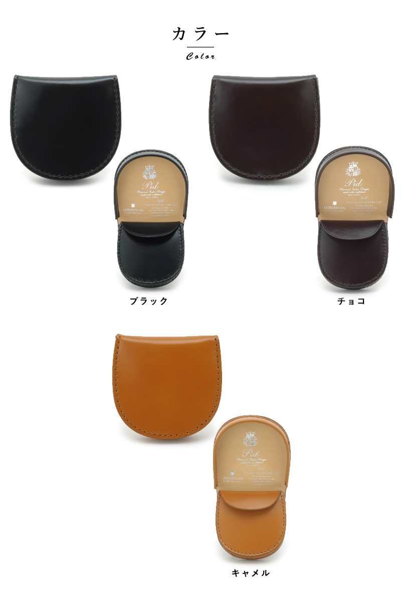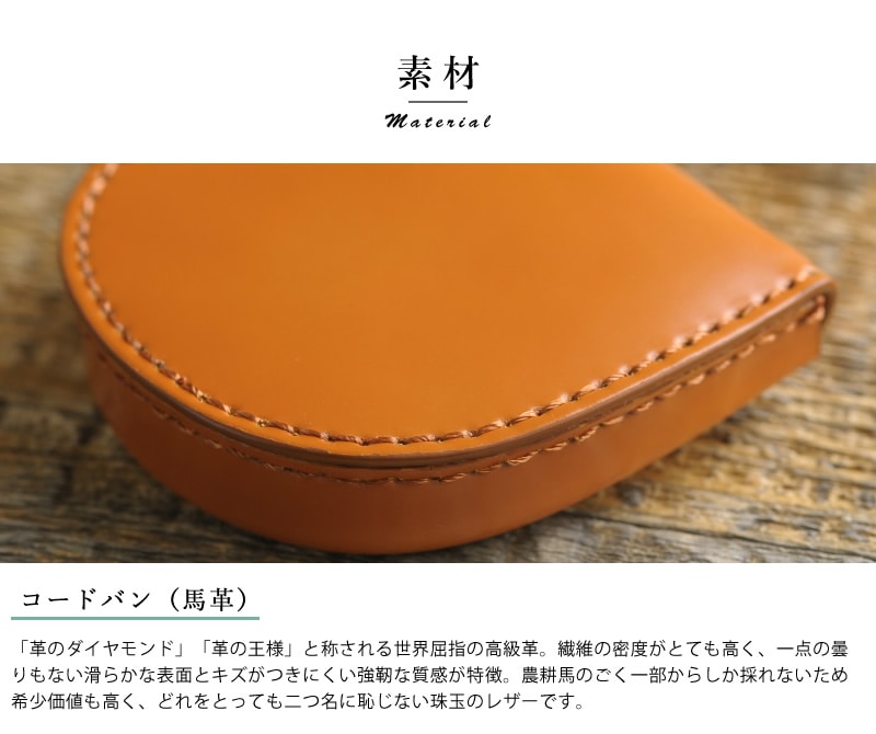 ヨーロッパの原皮を使用した日本製の美しい光沢と滑らかな銀面が魅力的なコードバンを使用した馬蹄型の小銭入れです。