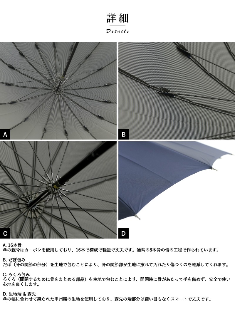 小宮商店 雨傘 裏縞文様 甲州織 65cm 16本骨 カエデ持ち手 高級 傘 男性 国産 紳士傘 通勤 ビジネス ブランド 品質 ラッピング 可 プレゼント 喜ぶ¥41,800(税込)