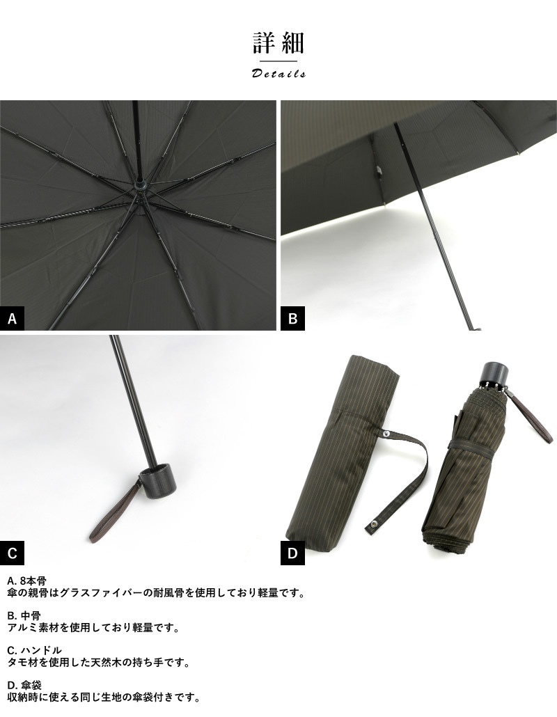 Ramuda メンズ 折りたたみ傘 58cm 甲州織 ブライト ストライプ 耐風骨 8本骨 UV加工 男性 高級 雨傘 ビジネス 大人 紳士傘 通勤 ラッピング 可 プレゼント¥15,400(税込)