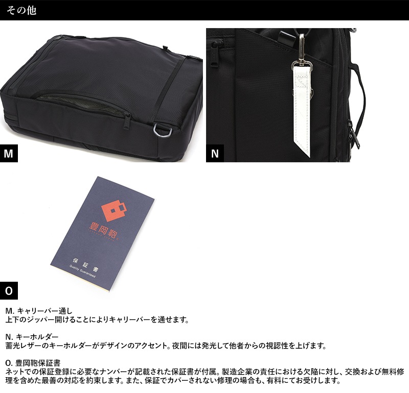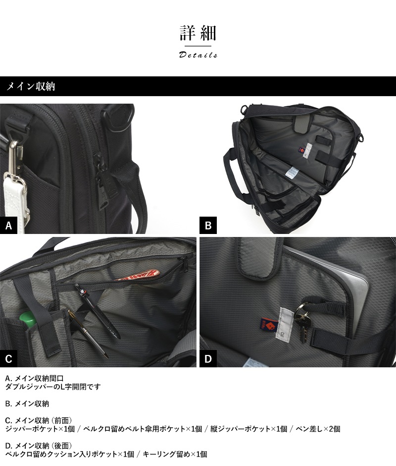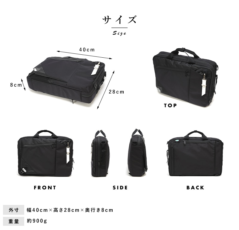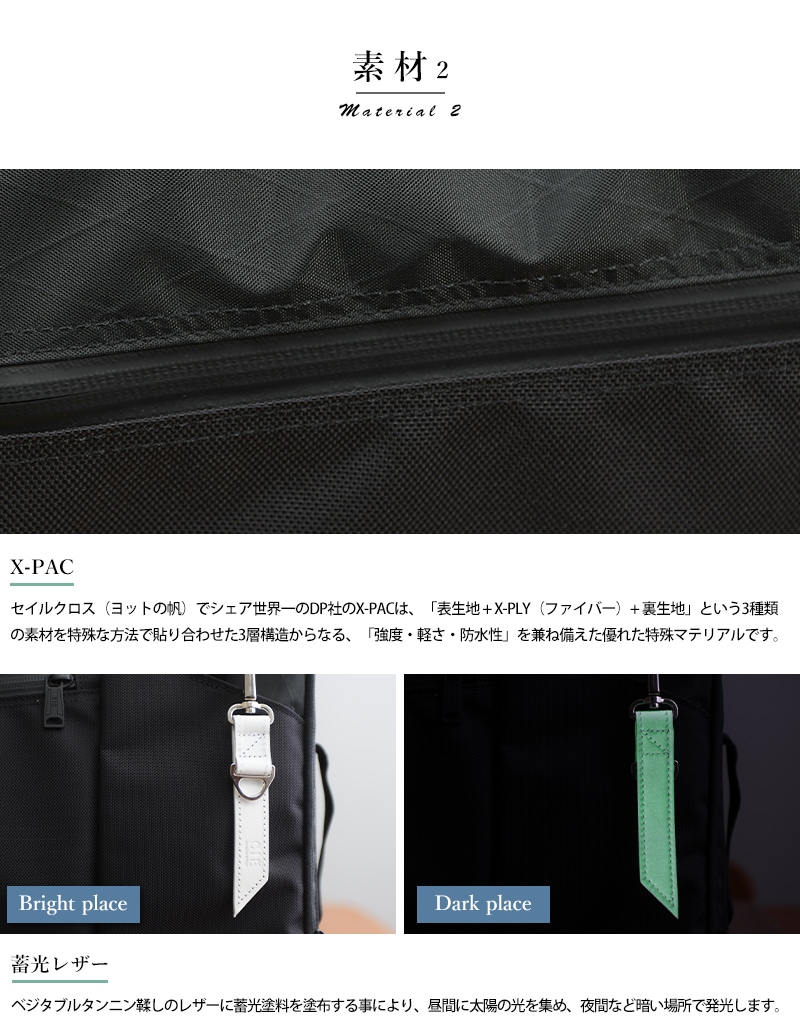レザーや金属パーツ等を極力少なくし、重厚の見た目でに軽量且つ機能性を追求した2wayバッグです。