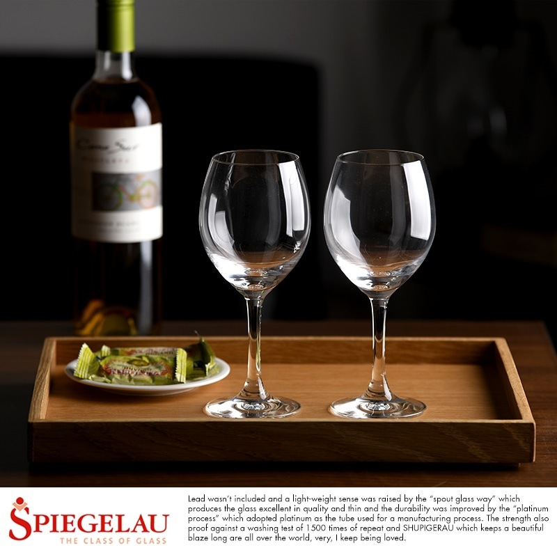 プラチナ製法により実現した軽くて耐久性の高い、白ワイン用グラスのペアセット。白ワインは赤ワインよりも温度が低い方がおいしく味わえるため、温度が変わる前に飲み切れるよう小ぶりなサイズが適していると言われています。大きく丸みのあるボウルは白ワインの香りを引き出しやすく、繊細な果実味と酸味を持つシャルドネ白ワインと特に相性抜群です。2個セットなので結婚祝いなどのプレゼントとしてもおすすめです。