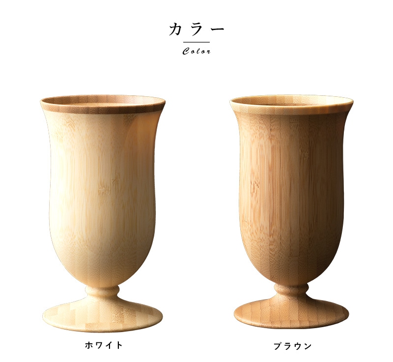天然の孟宗竹(もうそうちく)を使用した味わい深いビアグラスセット。素材本来の色味を生かした「ホワイト」と、高温で燻すことで色を変化させた「ブラウン」の2色セットです。一般的なビアグラスと比べて見た目も質感もやわらかく、「しっくりとなじむ手ざわり」と「やさしくなめらかな口あたり」は天然素材ならでは。カンパニュラをイメージしたやさしく繊細な曲線で、幅広い用途に使用できるよう扱いやすさを考慮したデザインです。食洗器にも対応しているので手入れも簡単。化粧箱に入れてお届けするのでプレゼントにも最適です。