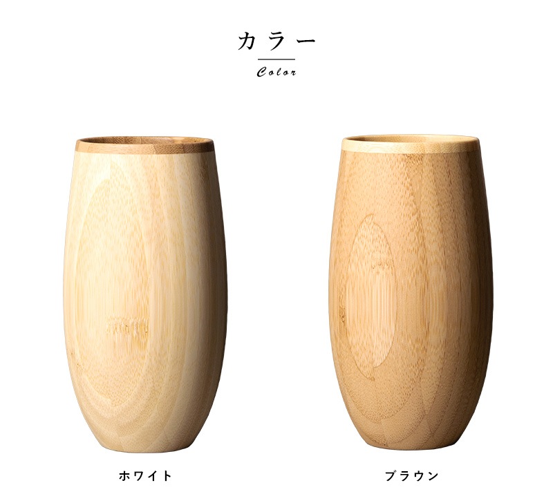 天然の孟宗竹(もうそうちく)を使用した味わい深いタンブラーグラスセット。素材本来の色味を生かした「ホワイト」と、高温で燻すことで色を変化させた「ブラウン」の2色セットです。一般的なタンブラーグラスと比べて見た目も質感もやわらかく、「しっくりとなじむ手ざわり」と「やさしくなめらかな口あたり」は天然素材ならでは。丸みをおびたシルエットと小さく締まった開口部は、香りをより長く留めることができます。フルーティーなエール系ビールなど、香りや味わいを楽しむお酒におすすめです。食洗器にも対応しているので手入れも簡単。化粧箱に入れてお届けするのでプレゼントにも最適です。