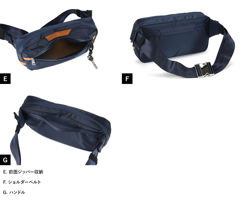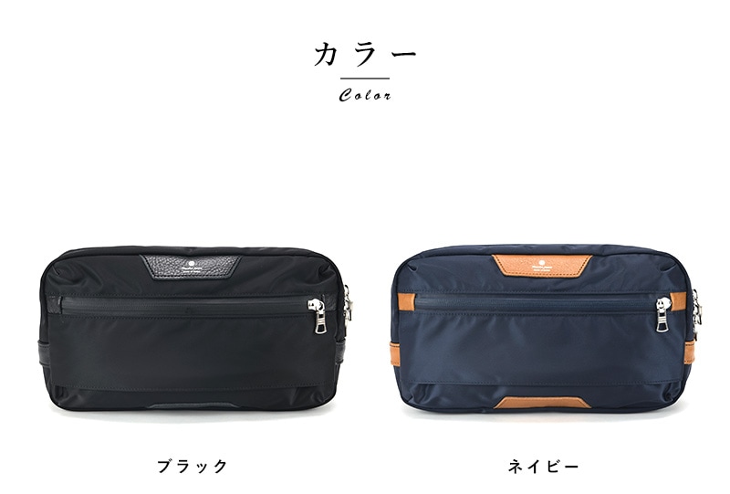 シンプルなデザインの特殊ナイロンツイルを本体に採用し、水にも強く様々なシチュエーションで使用できるボディバッグです。本体素材は裏面にPVCコーティングを施した特殊ナイロンツイルで、ハリ感と防水性を持たせています。付属の革にはコンビネーションで鞣されたカウレザーで独特の風合いに仕上がったレザーを使用しております。大きく開くメイン収納に、背面側にはポケットがついています。背面には取り外した時に持ちやすいハンドル付きで便利です。ワンタッチで開閉可能なバックルで取り外しが楽です。綺麗なハリのあるナイロン製ウエストバッグです。