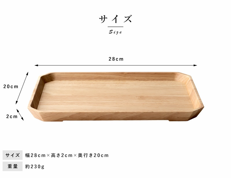 天然木を使用した素朴なトレイ。コーヒーとおやつなど、ちょっとしたものを運ぶのにほどよいサイズです。素材として使用しているラバーウッドは、やや光沢のある質感と滑らかな手触りが特徴の木材。使うほどにツヤを増し、味わいを深めていきます。独自開発の6層コーティングを施してあるため、食洗器にも対応。毎日気兼ねなくお使いいただけます。