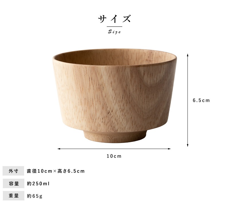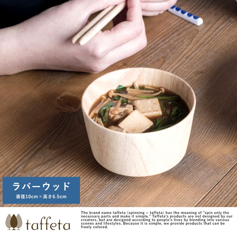 天然木を使用した素朴なお椀。素材として使用しているラバーウッドは、やや光沢のある質感と滑らかな手触りが特徴の木材。使うほどにツヤを増し、味わいを深めていきます。独自開発の6層コーティングを施してあるため色移りを防ぎ、食洗器にも対応。陶器やガラス食器と同じ感覚で、毎日気兼ねなくお使いいただけます。