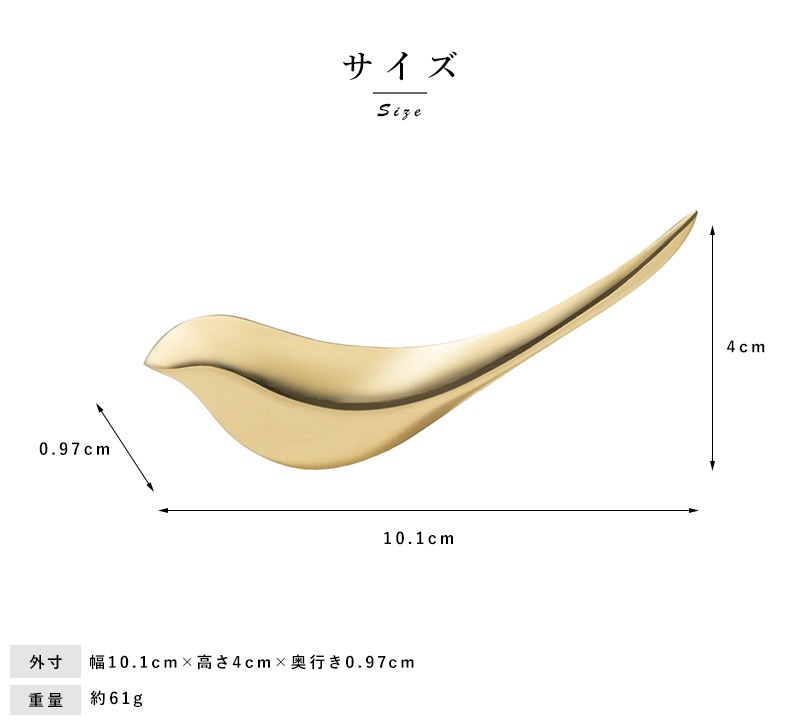 鳥をモチーフにした真鍮製のペーパーナイフ。枝にとまって羽を休める小鳥のように、Birdieはあなたの机や棚の上にとまります。しっぽで届いた手紙を開けるお手伝いをします。真鍮やシルバーならではの光沢と高級感があり、桐のケースに入っています。プレゼントにもおすすめです。