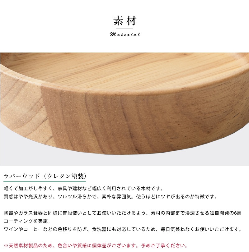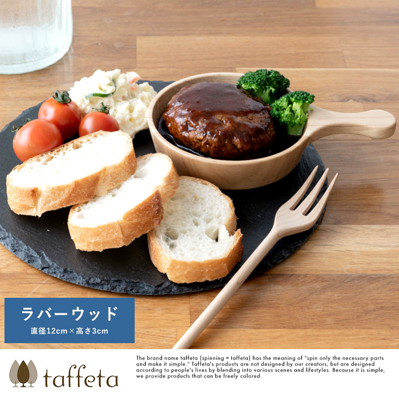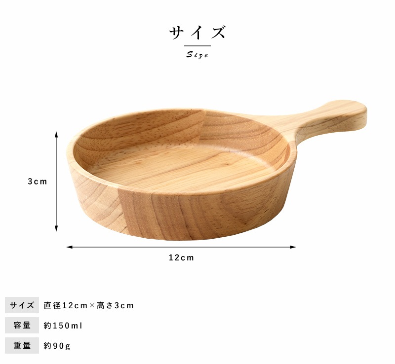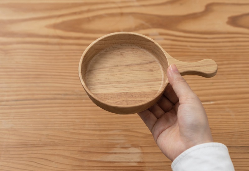 天然木を使用した素朴なフライパン皿。ハンドル付きで運びやすく、食事やおつまみなどにご使用ください。素材として使用しているラバーウッドは、やや光沢のある質感と滑らかな手触りが特徴の木材。使うほどにツヤを増し、味わいを深めていきます。独自開発の6層コーティングを施してあるため、色移りを防ぎ、食洗器にも対応。陶器やガラス食器と同じ感覚で、毎日気兼ねなくお使いいただけます。