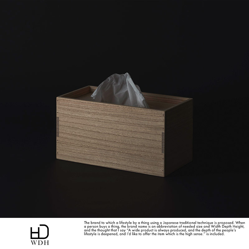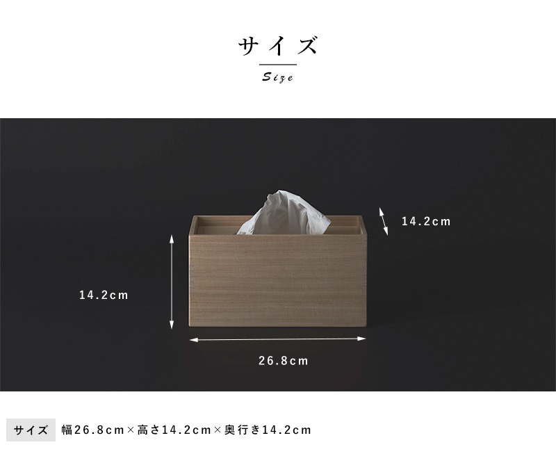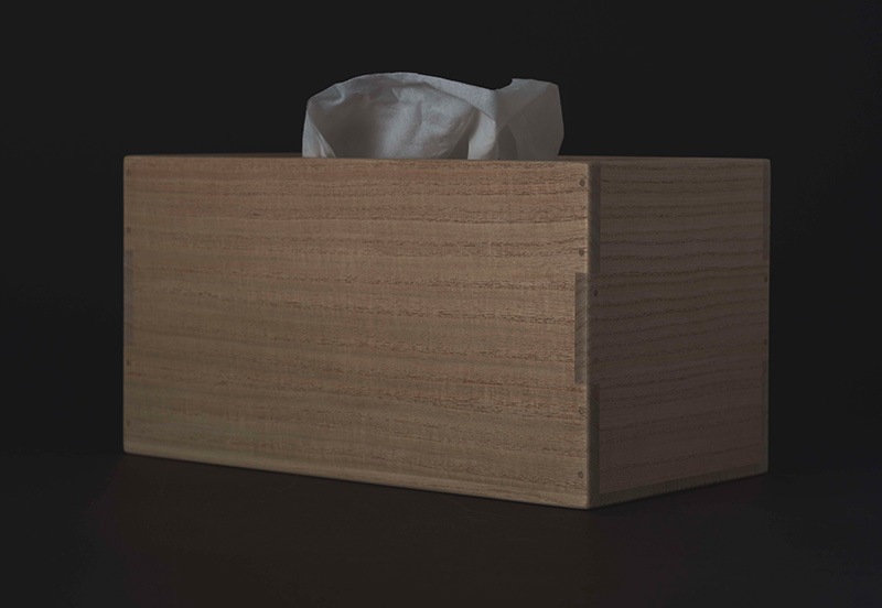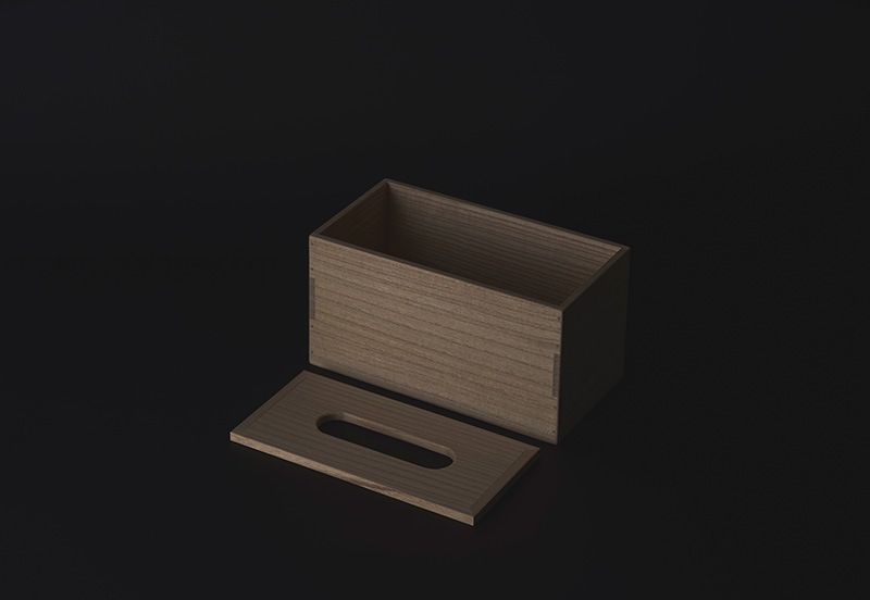 厳しい寒さの環境で育ち、2~3年の歳月をかけて長期乾燥した特別な桐材。さらに職人の目利きによって厳選されたものだけを製材・加工して作られたちり紙箱です。桐は古くから縁起が良い、幸福をもたらす木として尊ばれており、その性質は発火点が約400℃以上と耐火性に優れています。伸長率、収縮率が小さく狂いが少ないために気密性も高く、日本の四季でも大切なものを長期保管することに適しています。四隅の木組みは、伝統的な組み方「三つ組み」と呼ばれる2方向から木釘を打ち込んだ丈夫かつ職人の高度な技術が必要となる作り。仕上げには高価なろうそくの原料に使われるイボタの木に生息するイボタムシから採取した貴重な天然の蝋をすり込み、程良い艶や撥水性を保っています。手作りならではの熟練した技術とこだわりが随所に現れた逸品です。