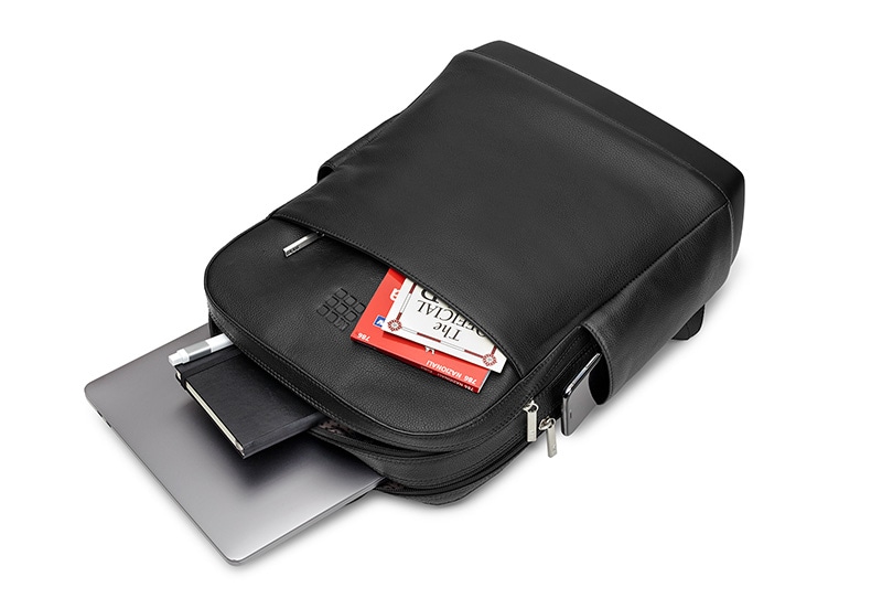 美しい艶感のレザーを使用したモバイルワーカー向けバックパック。モレスキンの伝説的ノートブックのクリーンな外観と雰囲気を踏襲してデザインされています。1日の仕事に必要なすべての物を整理して持ち運べるポケット複数を備えた、有能なトラベルパートナーにもなります。PC用とそれ以外の持ち物を分けて入れられる2ルーム仕様。調整可能なバックパックストラップと通気性の良いエアーメッシュを使用した背面。モレスキンノートブック専用ポケット、ペンホルダー、名刺ポケット、貴重品用ファスナーポケットを内蔵しています。