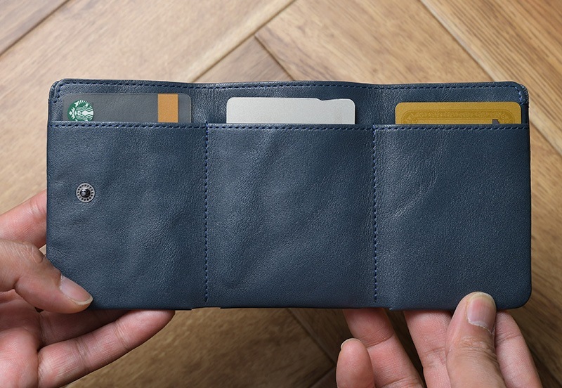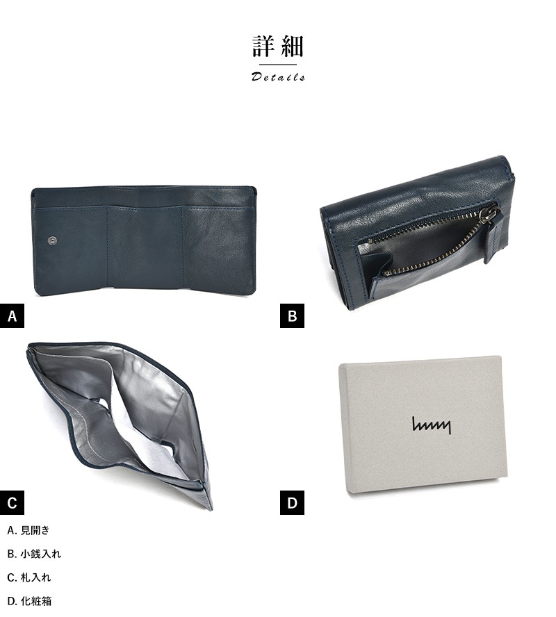 経年変化が楽しめるナチュラルレザーを使用した三つ折り財布。紙幣が程よく収まるよう高さを抑え、カード入れは縦収納に設計することで、コンパクトなサイズと使いやすさを両立。キャッシュレス決済が普及してきた今、現金・カード類をスマートに持ち歩きたい方におすすめです。香川県の革手袋製造によって培われた高い縫製技術から生み出されたレザーアイテム。時間と共に柔らかくなり、色つやが増すナチュラルレザー(牛革)を使用しています。