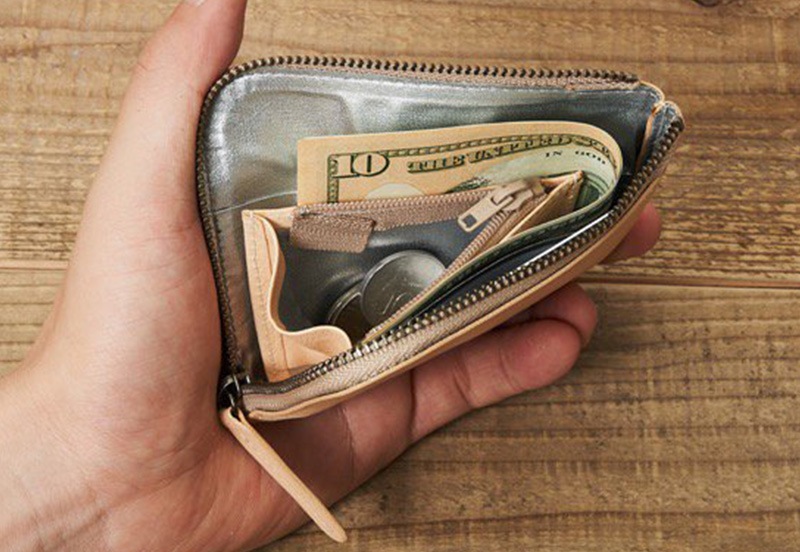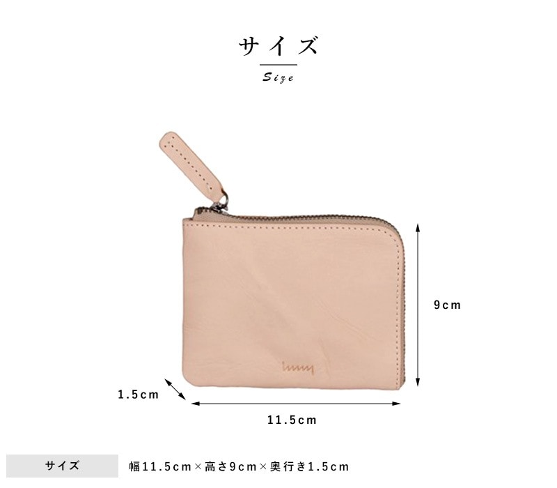 紙幣・硬貨・カードが手の平サイズにおさまるL字ファスナー財布。「コインケース以上、二つ折り財布未満」といった収納力と携帯性で、スマートフォン&電子マネーと相性がよく、近年注目を集めている財布です。表面加工を極力抑えたナチュラルレザーを使用しているので、使うほど色艶を深め、飴色へと変化していく経年変化をお楽しみいただけます。香川県の革手袋製造によって培われた高い縫製技術から生み出されており、メイドインジャパンの良さも実感していただけます。