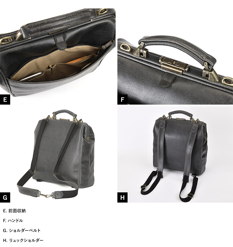 ・手持ち・ショルダー・リュックの3通りの持ち方ができる3way仕様。状況に合わせて使い分けが可能です。