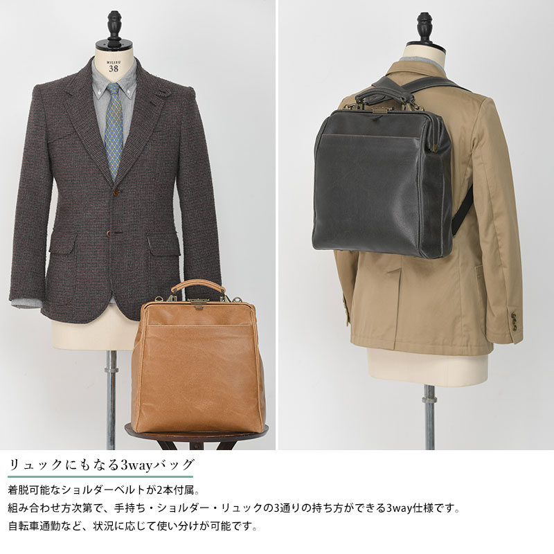 品質自慢の豊岡製ダレスバッグ。・レトロな雰囲気が味わい深い3wayダレスバッグ。『鞄の街』と名高い豊岡製です。