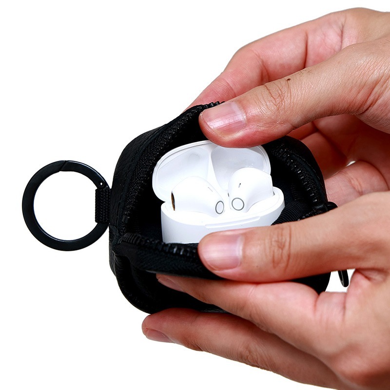 AirPodsはもちろん、様々な機種のワイヤレスイヤホンが収納可能なファスナーオープン型のミニポーチ。