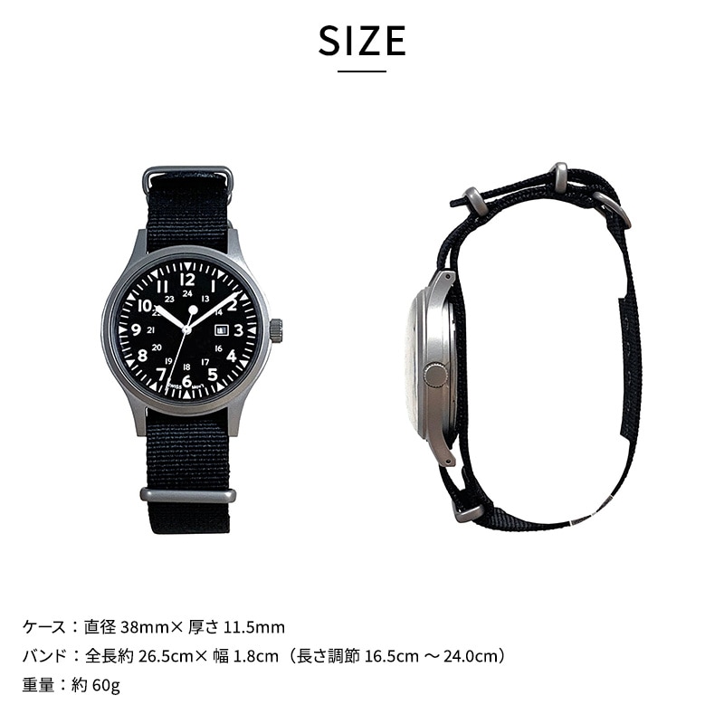 ミルスペック仕様のミリタリーウォッチをベースに、現代仕様にアップデートした腕時計を提案しています。