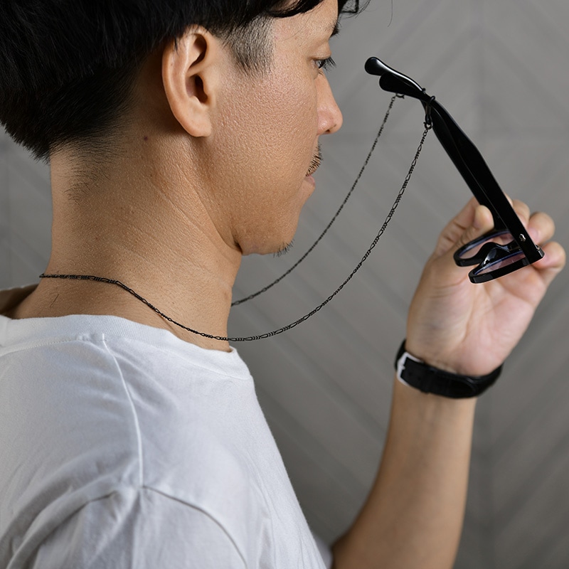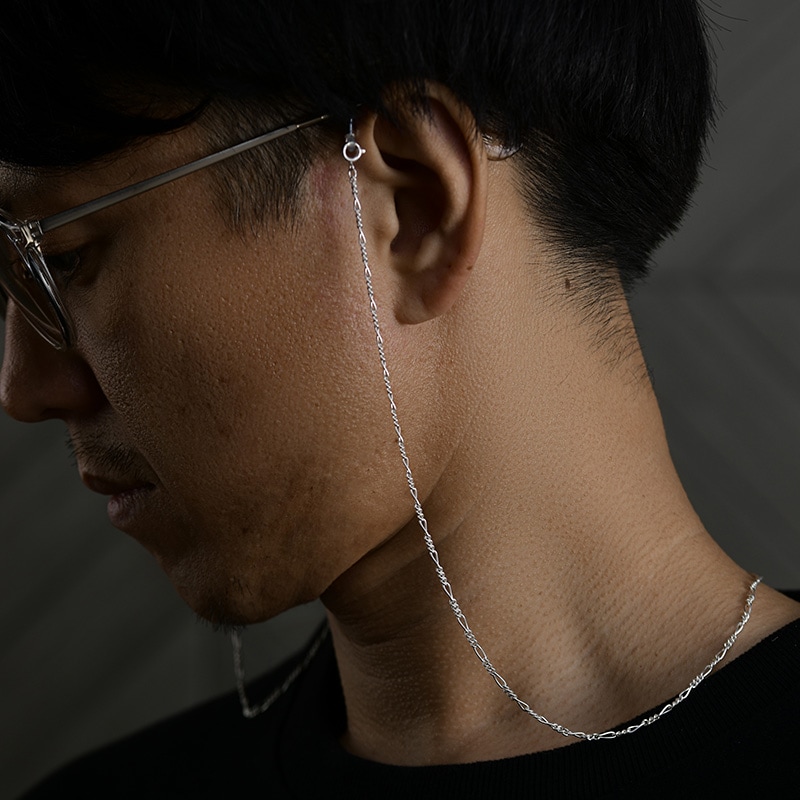 チェーンのパターンはシンプルで使いやすく、シリコンパーツを外すことでネックレスとしてもお使いいただけます。