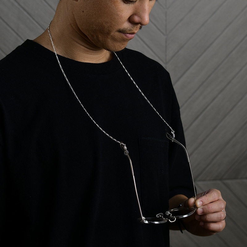 シンプルなシルバー製のチェーンを使用した、当店オリジナルのグラスチェーンです。