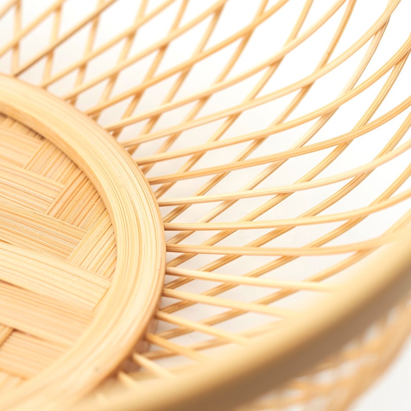 底面は平たい竹を使い、縦横に隙間なく編んだ丈夫な網代編み。