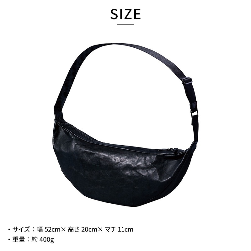 相棒のように毎日使いたい撥水牛革製ボディバッグ シワ加工を施した撥水牛革製なのでタフに使えます。中身が見やすいシルバー内装。小物を収納しやすい、2箇所の内ポケット付き。開閉しやすいダブルジップ仕様です。滑りがよく体に沿いやすいナイロンベルトは、バッグを後ろから前に、前から後ろにスムースにスライドできます。