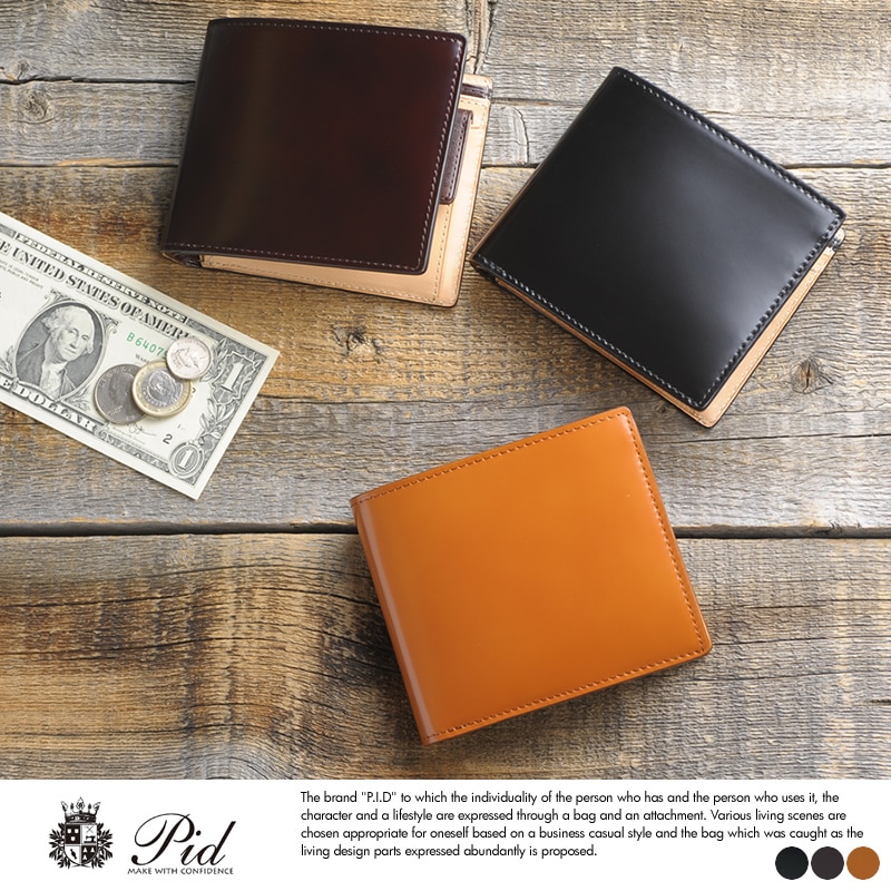 Pid コードバン ミドル財布 vasto メンズ 男性二つ折り財布/小銭入れあり/大容量/シンプル/