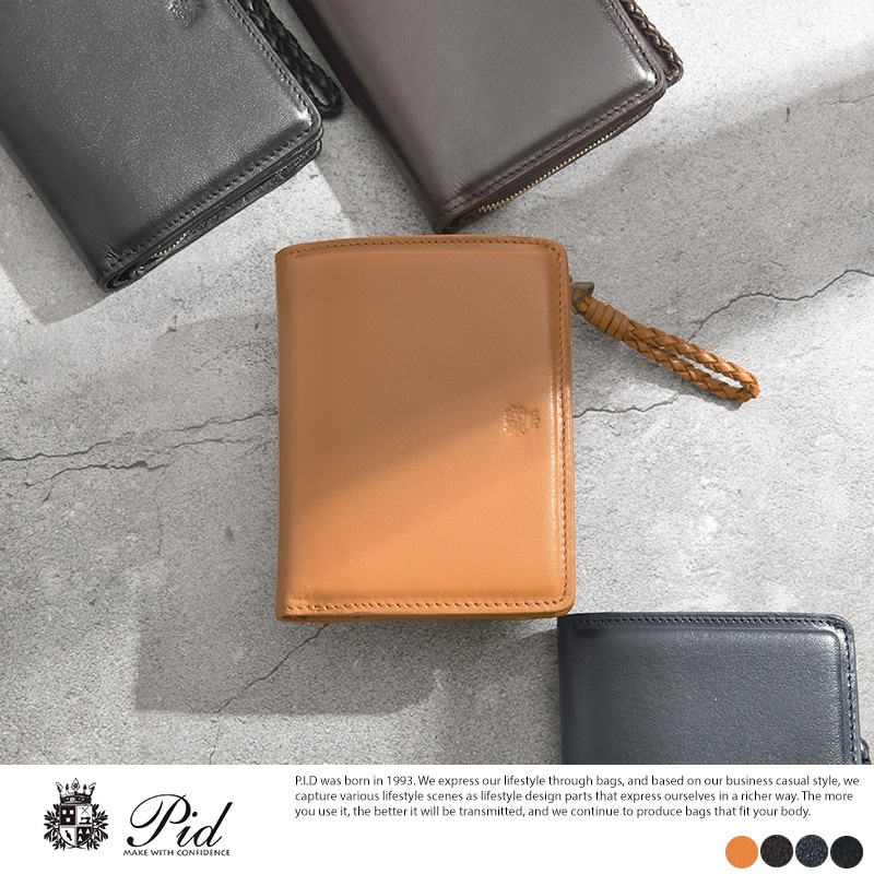 Pid 防水牛革 二つ折り財布 ミドルサイズ ecrire 本革レザー/小銭入れあり/カードがたくさん入る/おしゃれ/