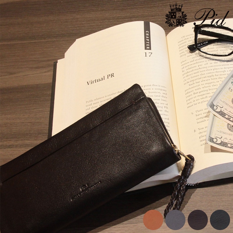 Pid 撥水レザー ラウンドファスナー 長財布 ecrire メンズ 男性財布/大容量/本革 牛革/カード入れ 多い/
