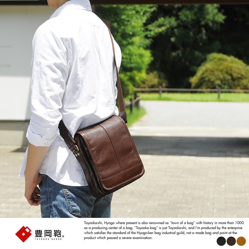 豊岡鞄 本革ミニショルダーバッグ 縦型 フラップ メンズ 男性 大人斜めがけバッグ 小さめ/革 牛革 レザー/日本製/おしゃれ シンプル 男女兼用/
